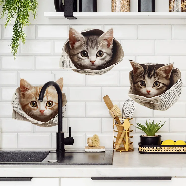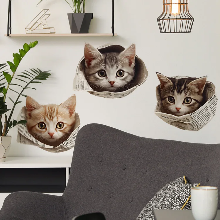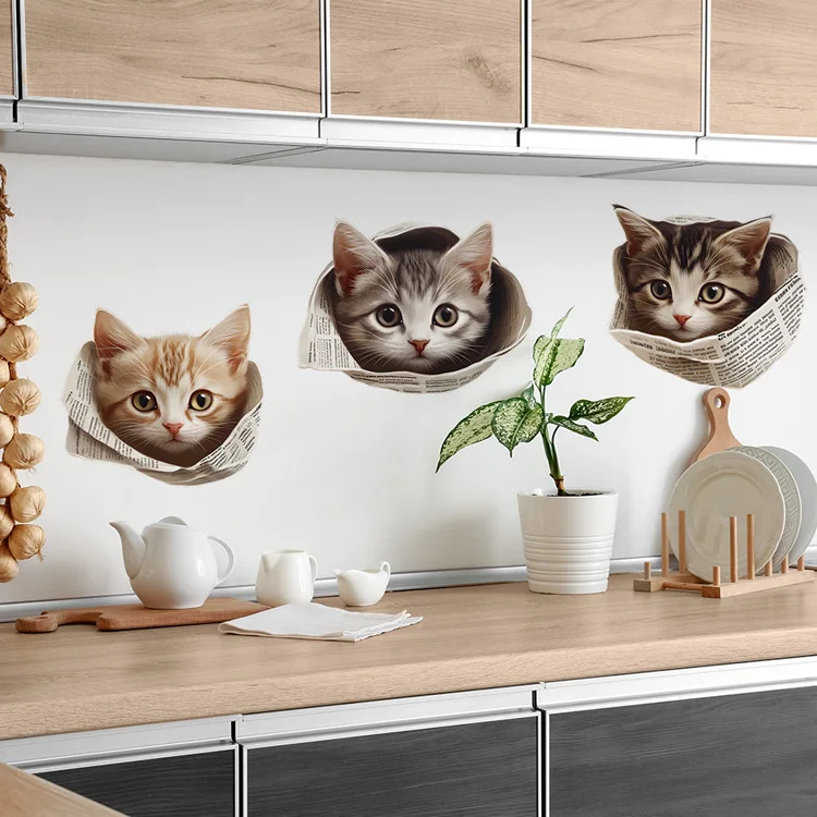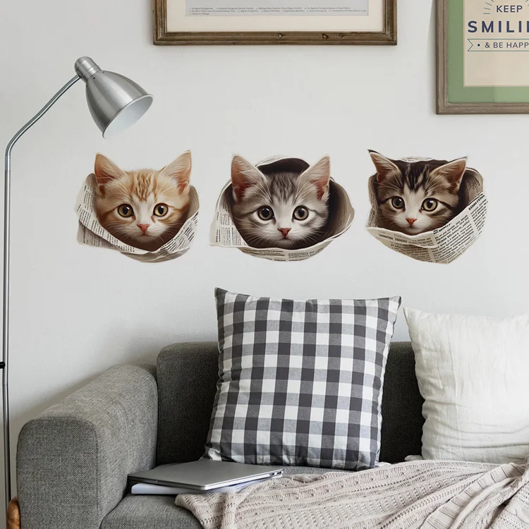 Cute Three Kittens Wall Sticker – Self-Adhesive Cat Decal for Home Decor