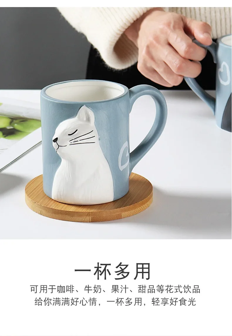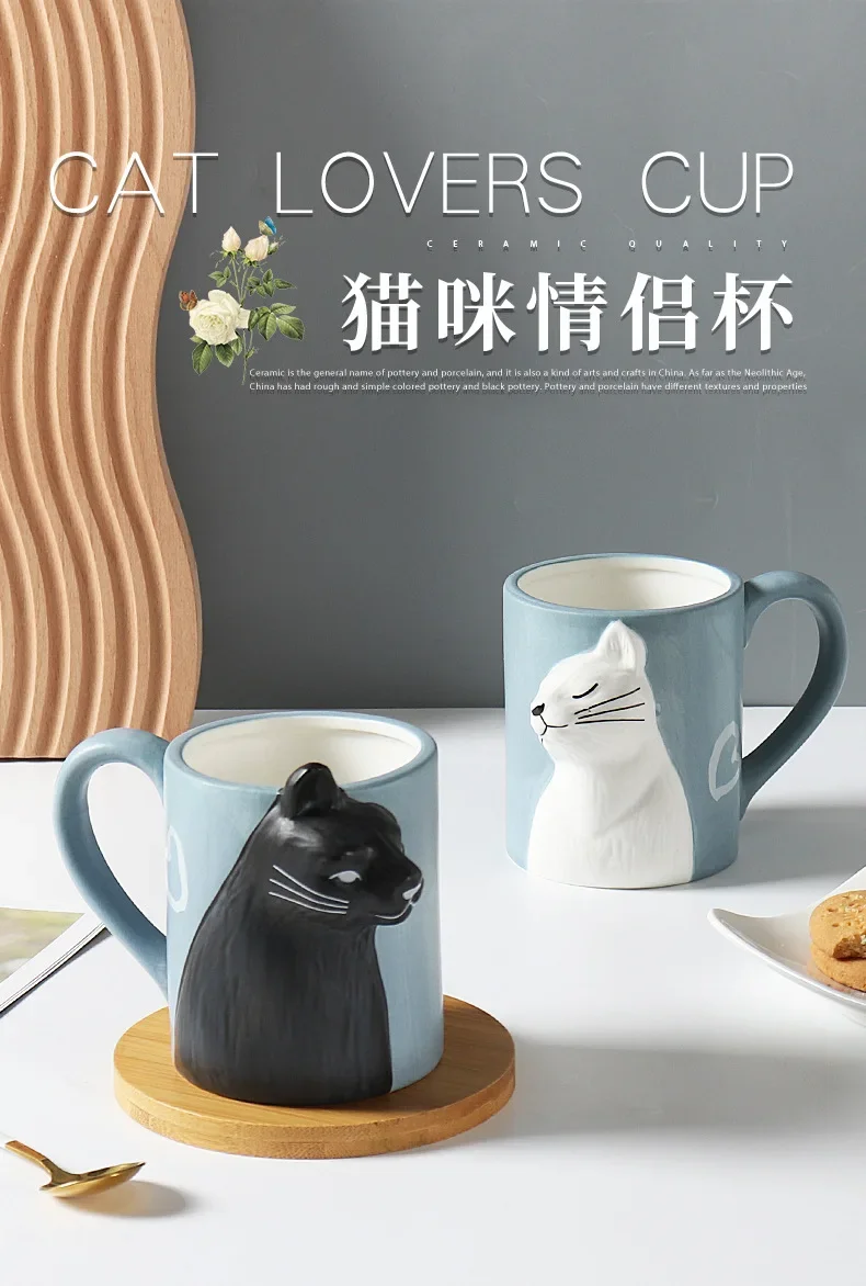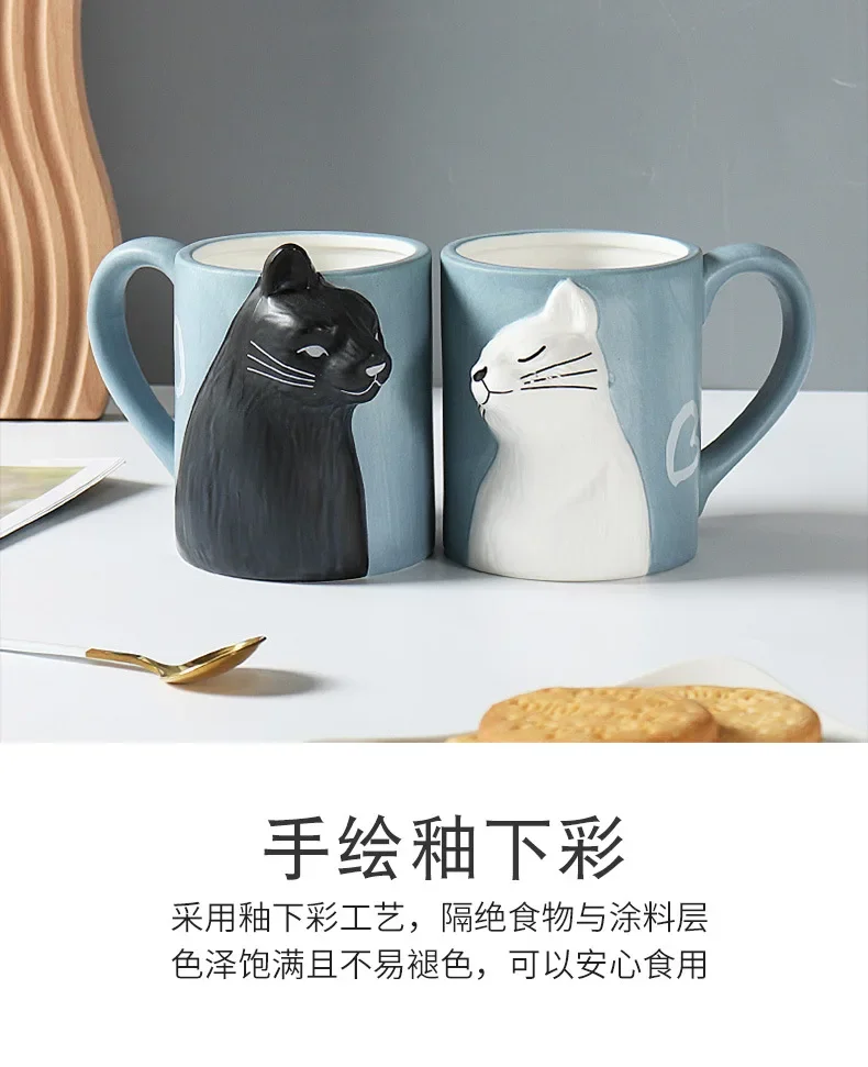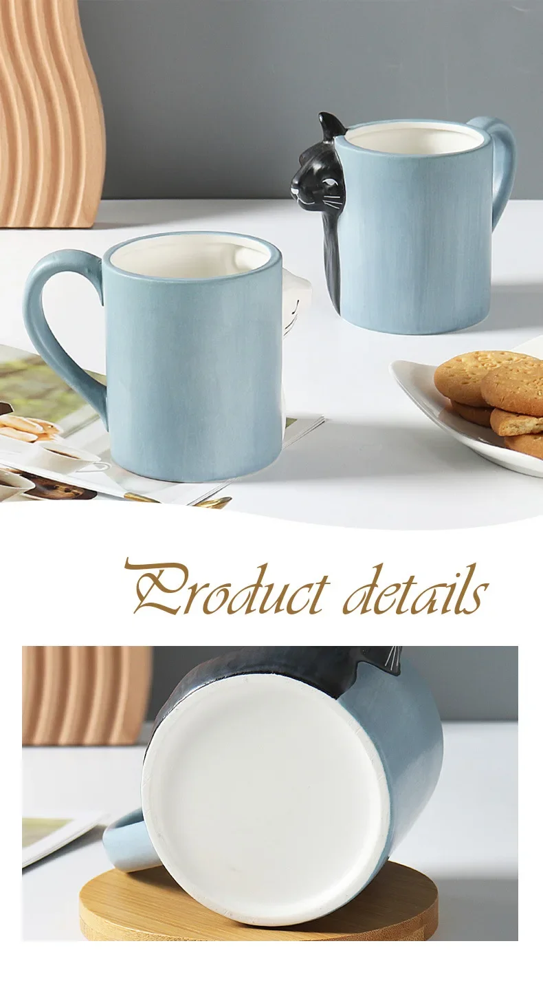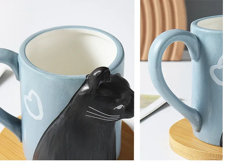 3D Cartoon Cat Ceramic Mug with Creative Handle – Irregular Cup